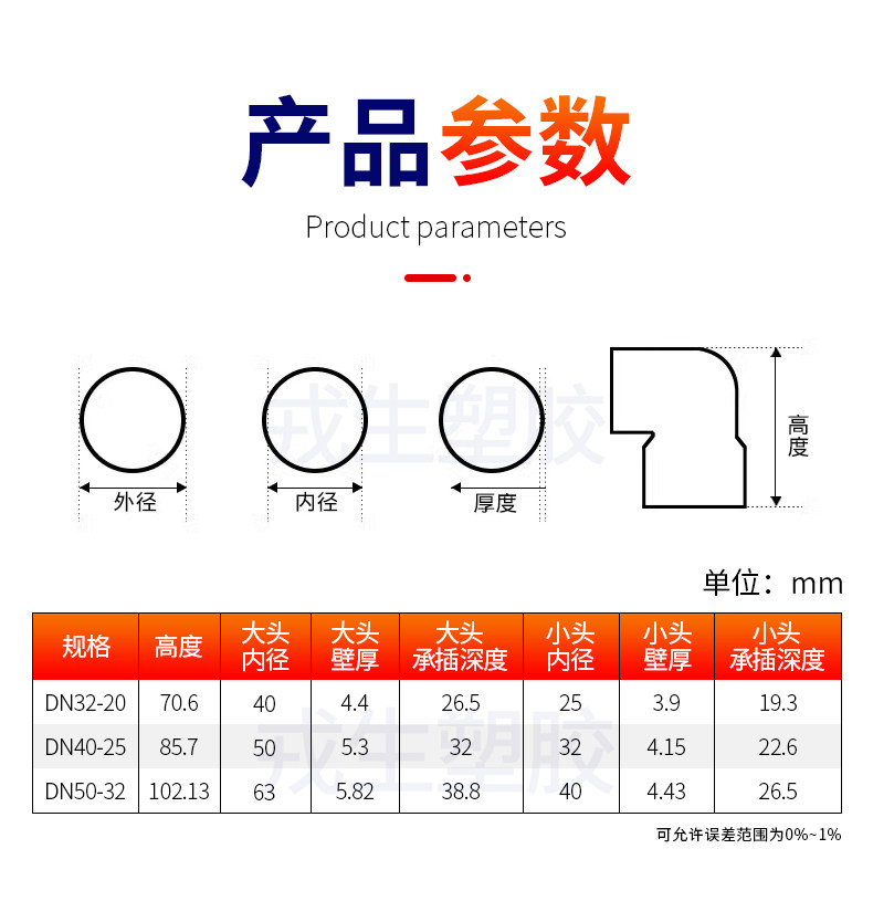 Rongsheng UPVC Reducer Clobow 90 -градусный диаметр. Маленькая головка ПВХ изгиб труба изгиб труба Пластиковый сустав 25 32 40