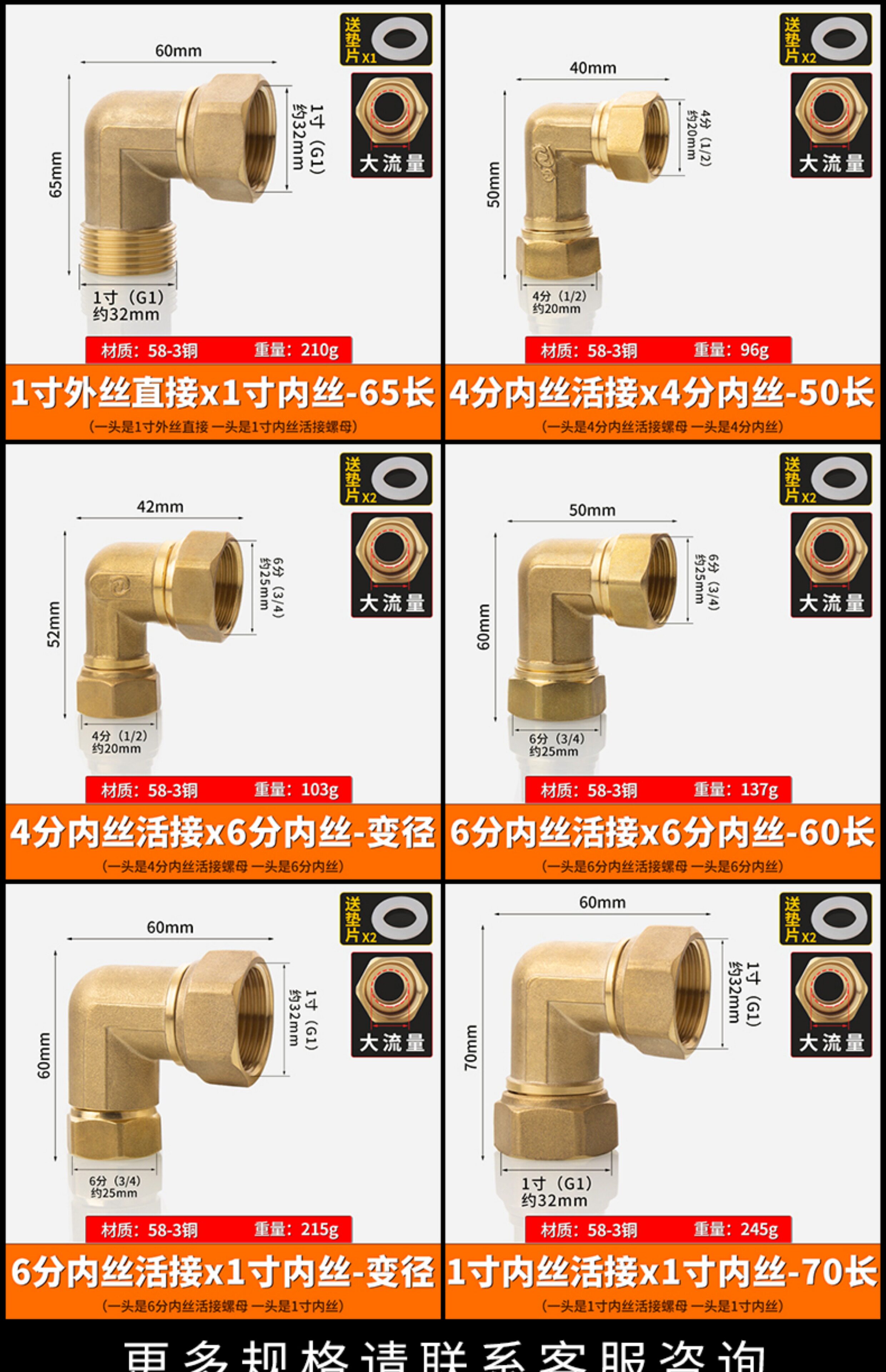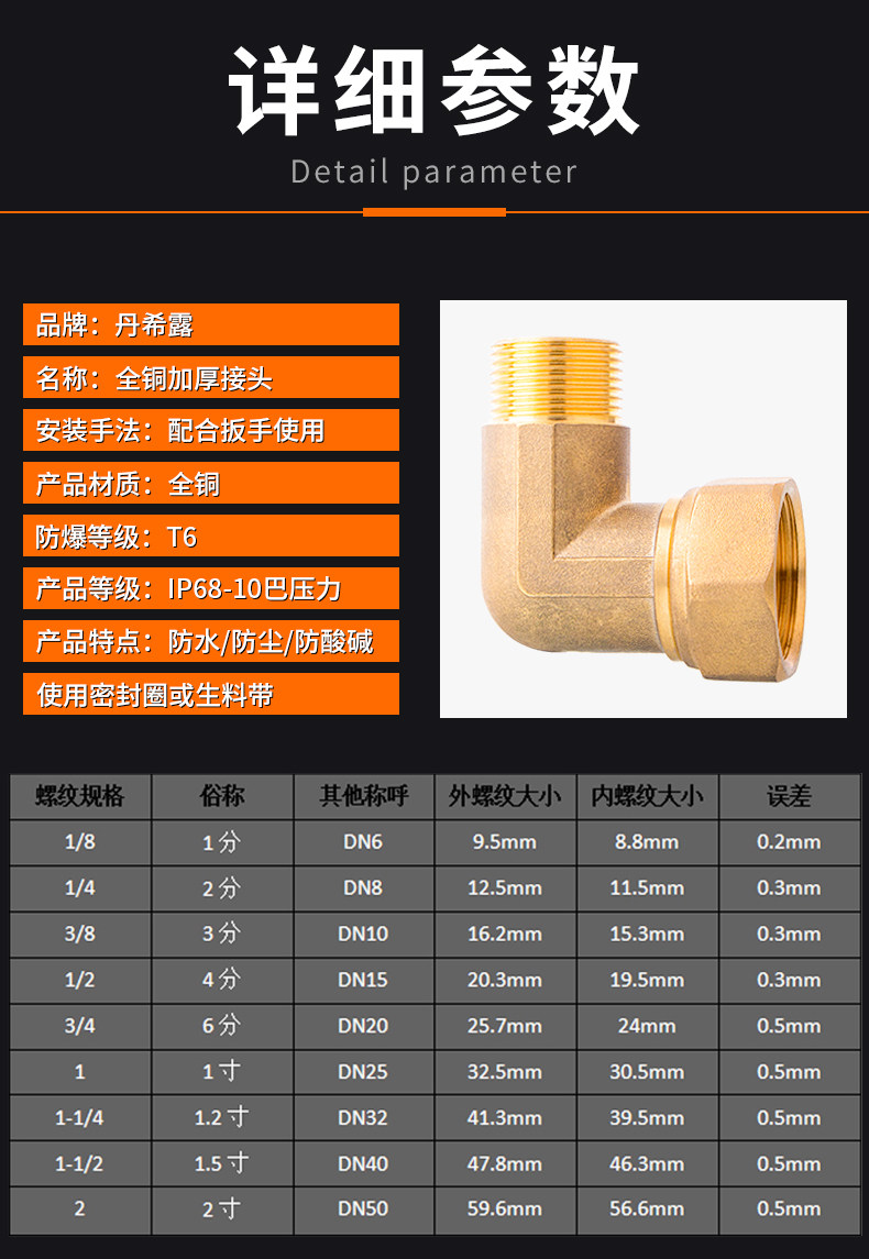 Полная медная переменная диаметром кольковые аксессуары для меди 4/6 分 全 全 全 全 全 全 1 -Inch Live Connection Внутреннее и внешнее шелковое аксессуары Daquan