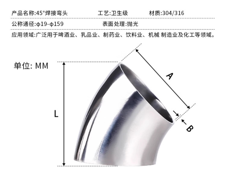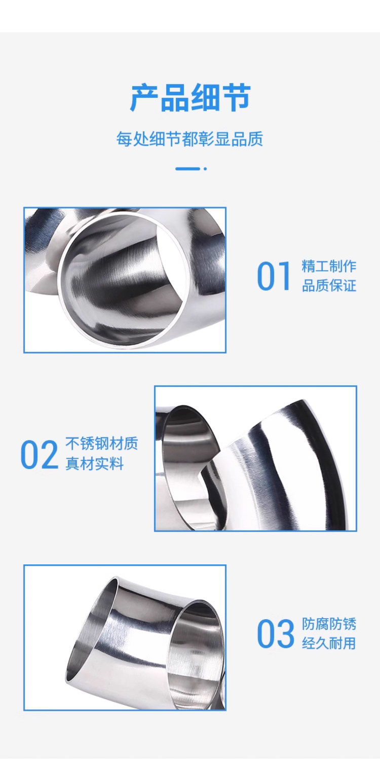 Колено из нержавеющей стали санитарного класса 304, трубное соединение под углом 90 градусов, внутреннее и внешнее зеркало 180, сварные коленчатые фитинги под углом 45 градусов