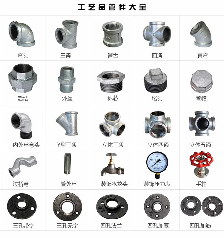 Крафтные аксессуары железа водопроводной трубы Трехмерный трехэтажный разъем Magno Стальной чугун Связь с трубопроводом Черный продукт Три звена