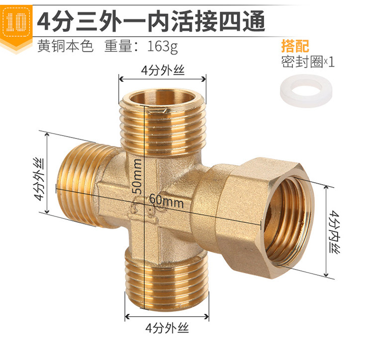 4 балла полная медная утолщенная живая подключение Три -техническая газовая труба внутри и снаружи запчасти для шелковой меди