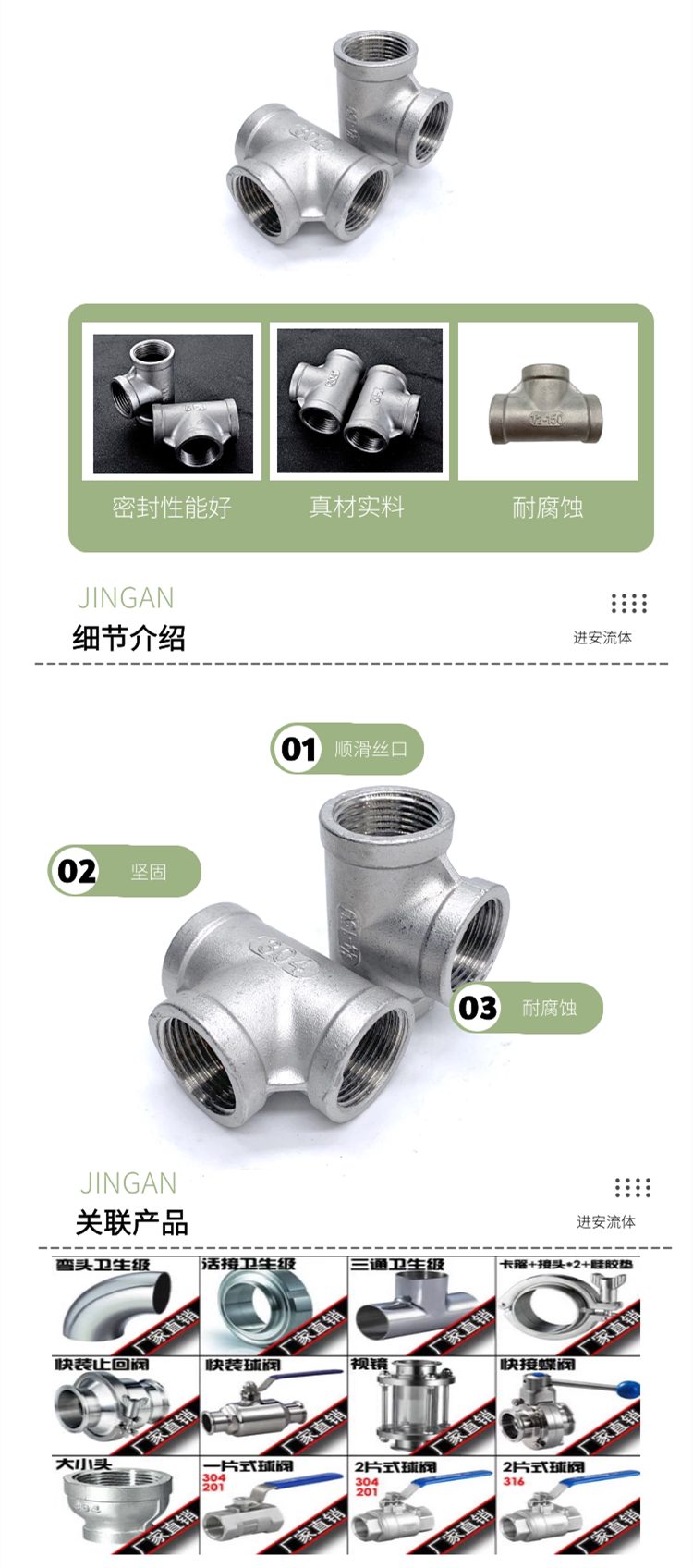 304 Внутренняя провод из нержавеющей стали Трехногих тонких литье Внутренние резьбы, такие как 4 минуты, 6 минут, 1 -дюймовые аксессуары для водопроводов непосредственно подключите