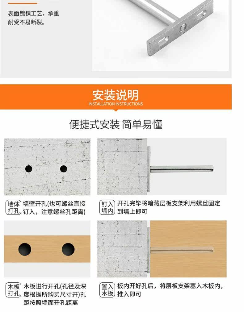 Скрытый слой стены, держащий гвоздь, скрытая фиксированная поддержка T -образная полок