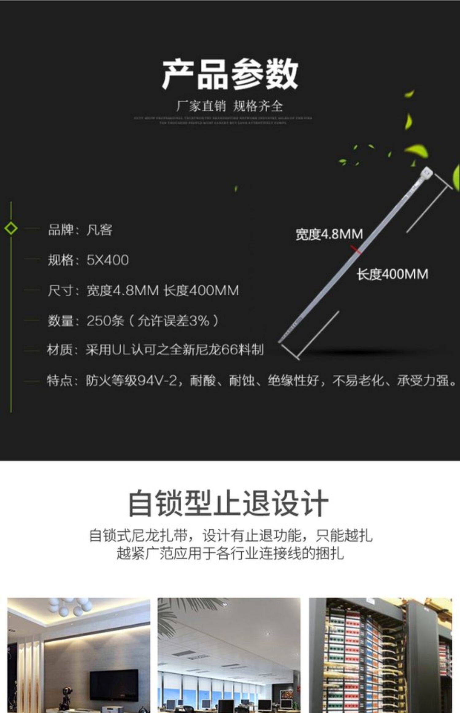 Черные нейлоновые пластиковые кабельные стяжки, 400mm, 250 шт, 4.6mm