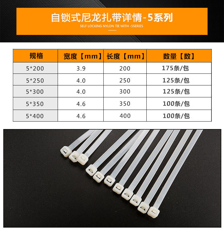 Экологичные пластиковые нейлоновые кабельные стяжки, 6.0mm