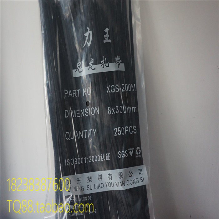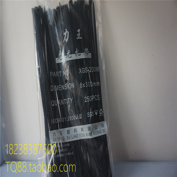 Черные нейлоновые кабельные стяжки, 8x, 300mm