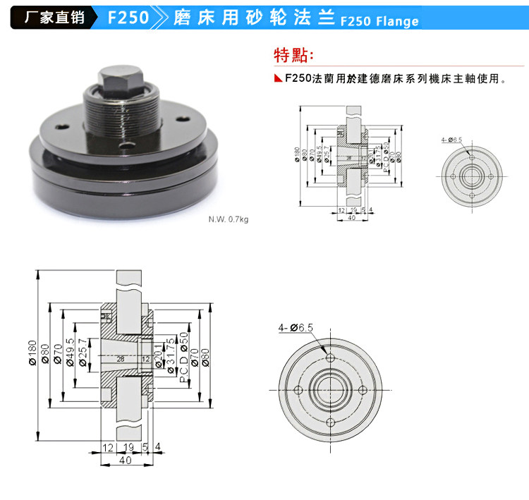 Фланец шлифовального круга, Тайвань, фланец Michelin, маленькая шлифовальная машина, фланец шпинделя с песком, фланец 250/350, нержавеющая сталь