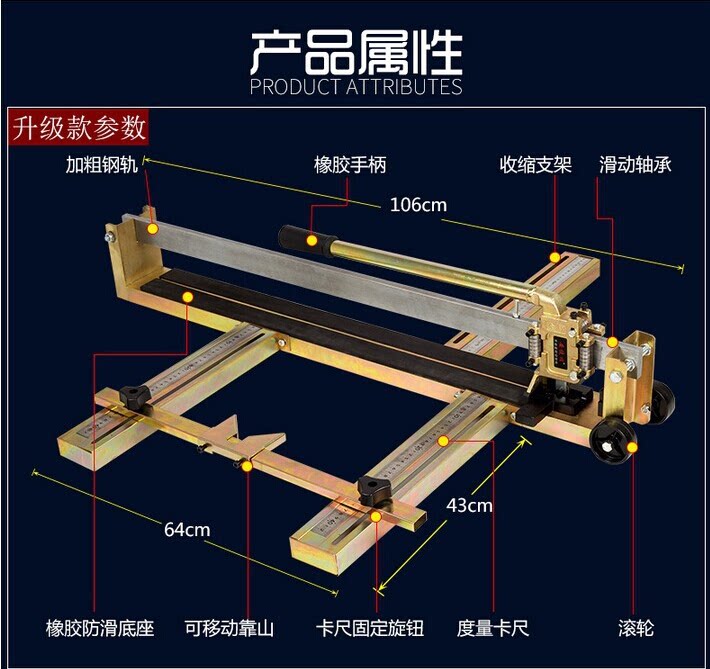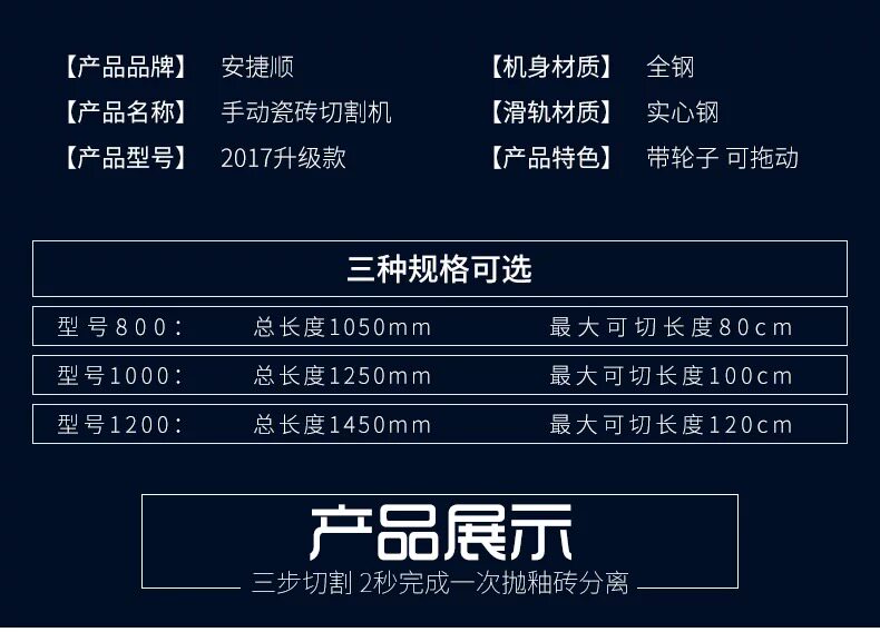 安捷顺 Ручная плитка для резки плитки плитка плитка толкай нож 800 1000 1200 толчок нарезка для плитки на пол.