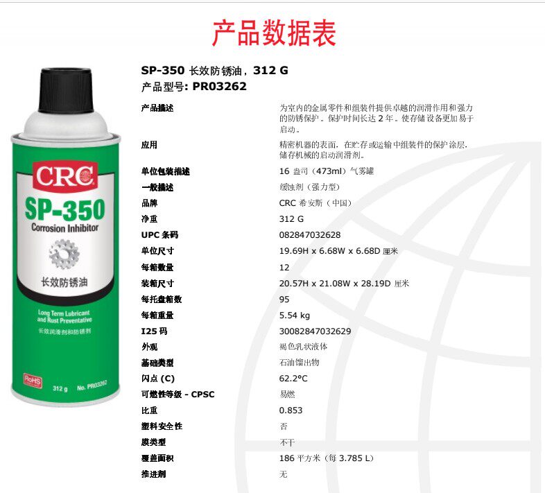 US CRC SP-350 длинный защитный агент с ржавой ржавкой (маслянистый)