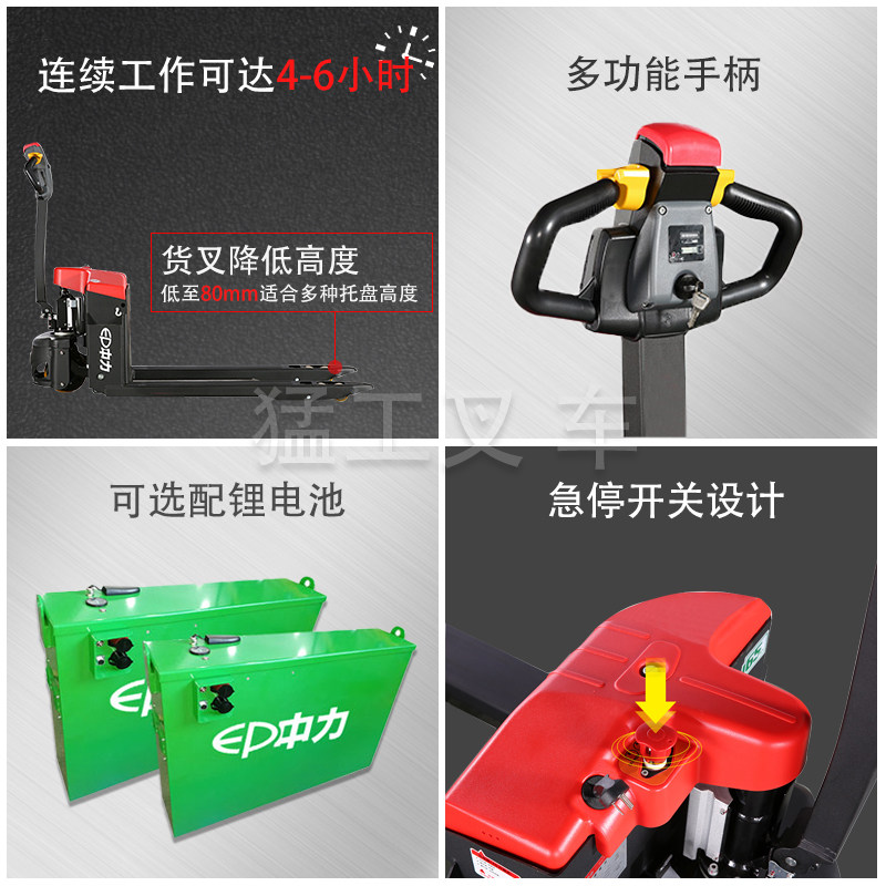 Zhongli Electric Forklift 1,5 тонны 2 тонн небольшого алмазного аккумулятора Электрический автомобиль гидравлический поднос поднимается и падает