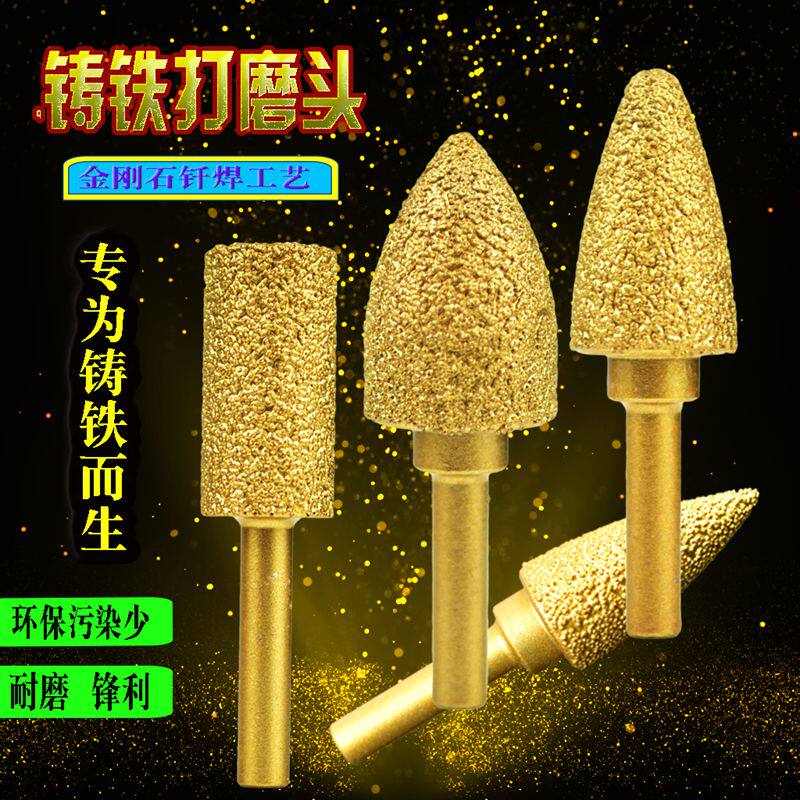 Паяная алмазная шлифовальная головка пулевидного типа, чугунный шлифовальный стержень, шлифовальный стержень из сплава стекла, 6 ручек, цилиндрический наконечник, электрическое шлифование