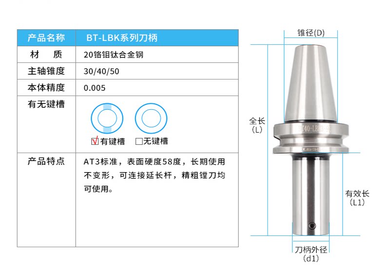 Ручка ножа BT50-LBK LBK Ручка ножа грубая голова.