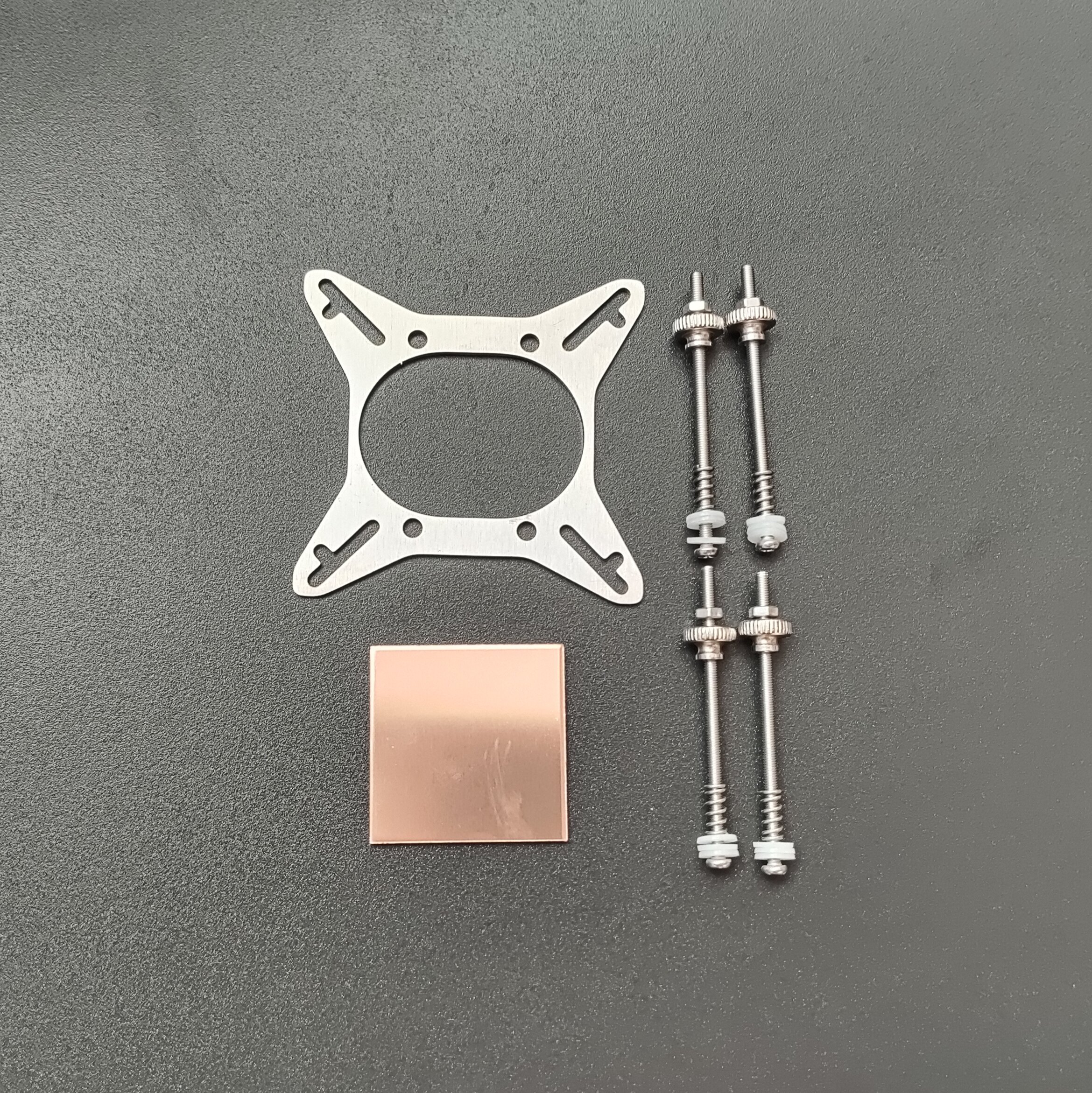 Винты и гайки изготовлены из нержавеющей стали.Гайки с накаткой изготовлены из чистой меди и не представляют собой обычные железные винты, склонные к ржавчине. Прокладки белого и красного цветов доставляются случайным образом. В видеокартах обычно используются винты M2,5, которые немного тоньше, чем процессоры. Также можно использовать винты М3, но они встречаются редко. Поэтому в целях безопасности следует выбирать винты M2,5 для видеокарт и винты M3 для процессоров и северных мостов.