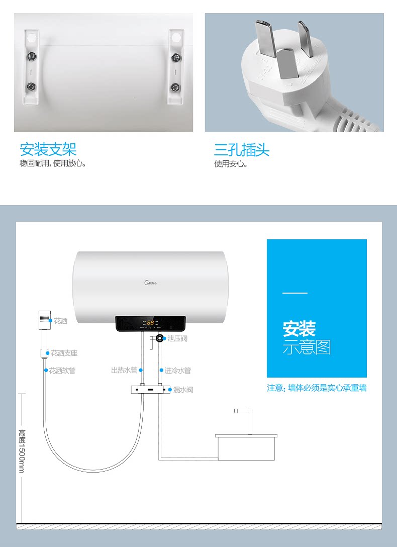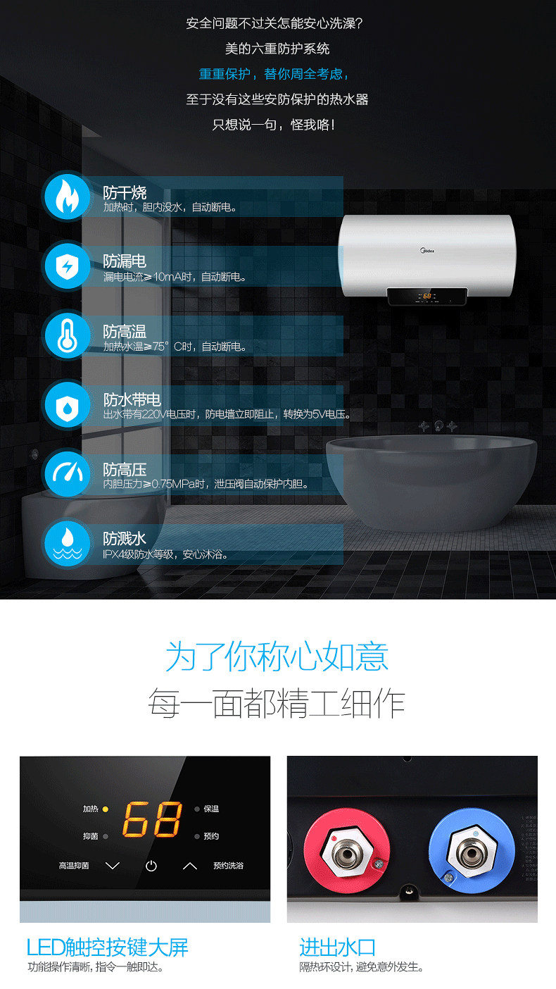 Midea/美的 X1 (s) Электрический водонагреватель 50 60 -литровый хранение воды Домохозяйственная ванна горячая