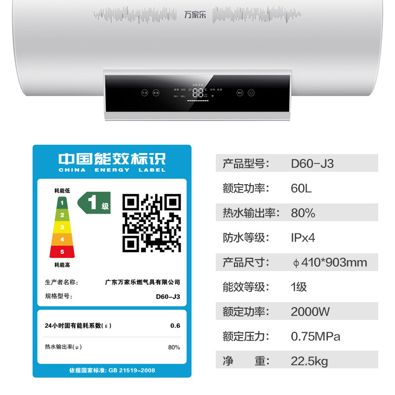 Macro/万家乐 D60-J3 Электрический водонагреватель Дом 60-литровый туалетный скорость горячее хранение водяная ванна Wifi Wifi