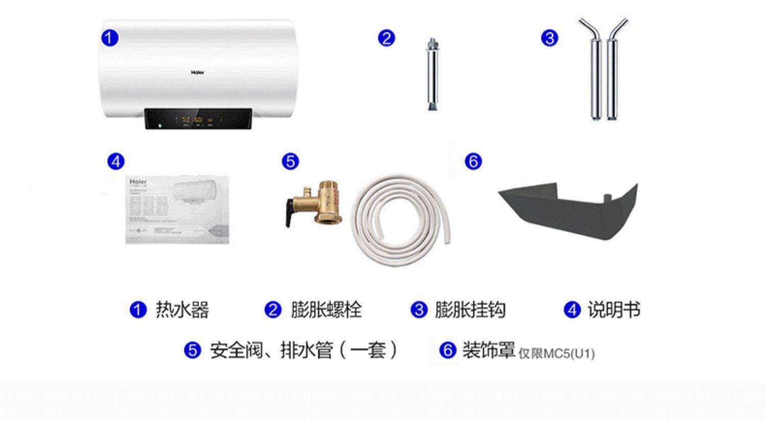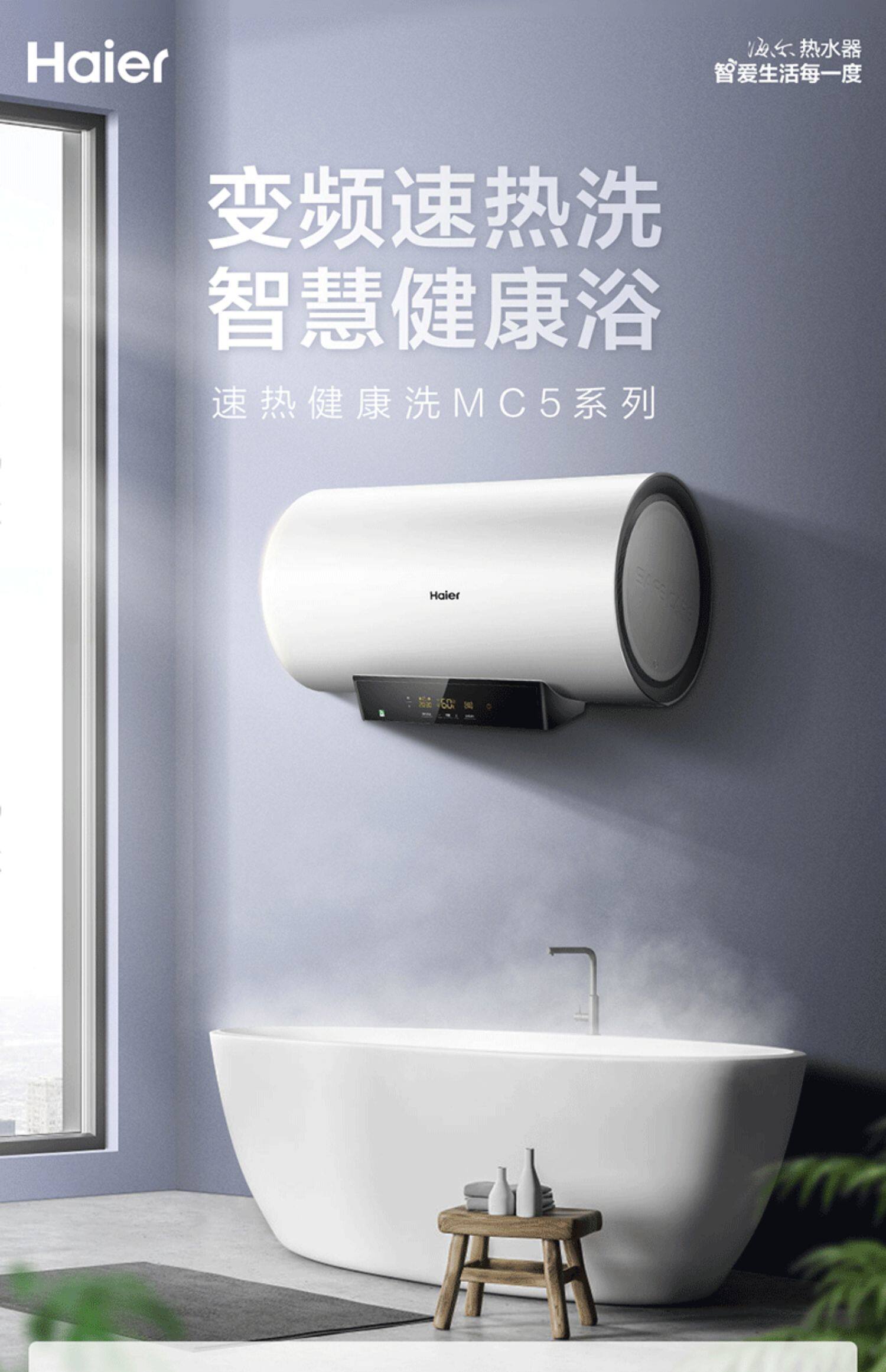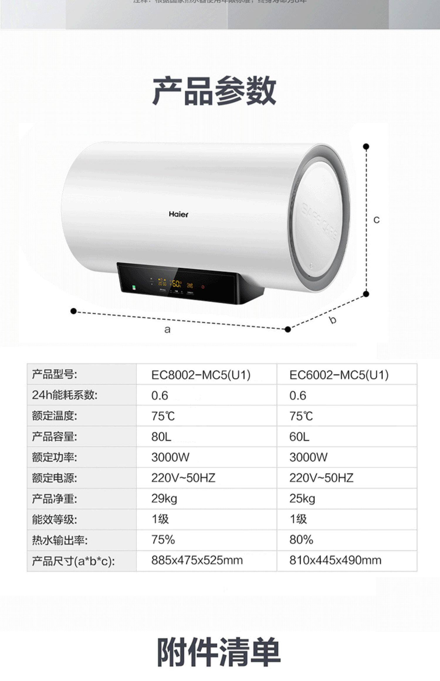 Haier 80 -Liter Electric Water -Heater Hovel Toame Barge Office Flagship MC5 Smart Voved до повышения энергоэффективности уровня 1 60 л.