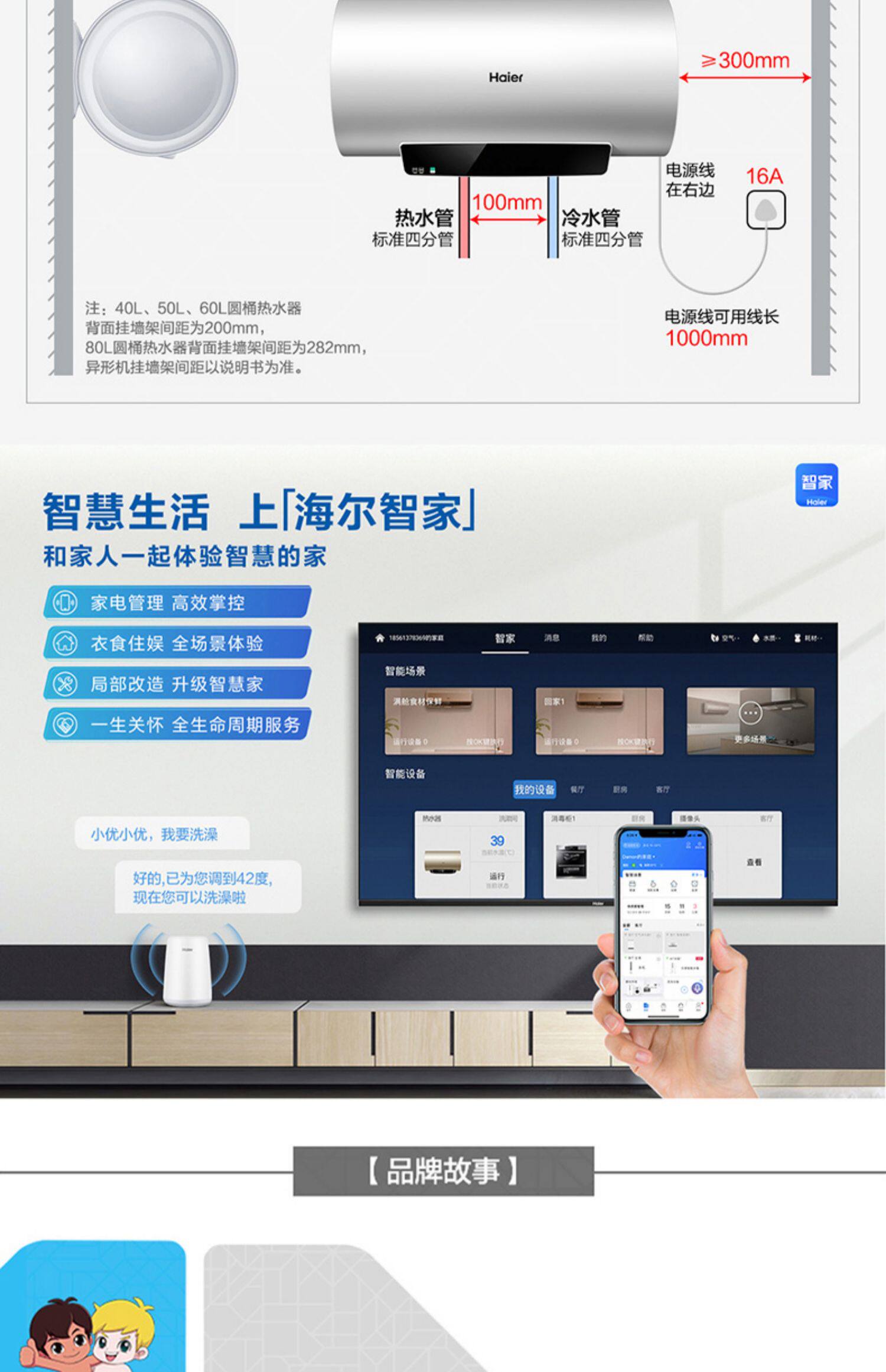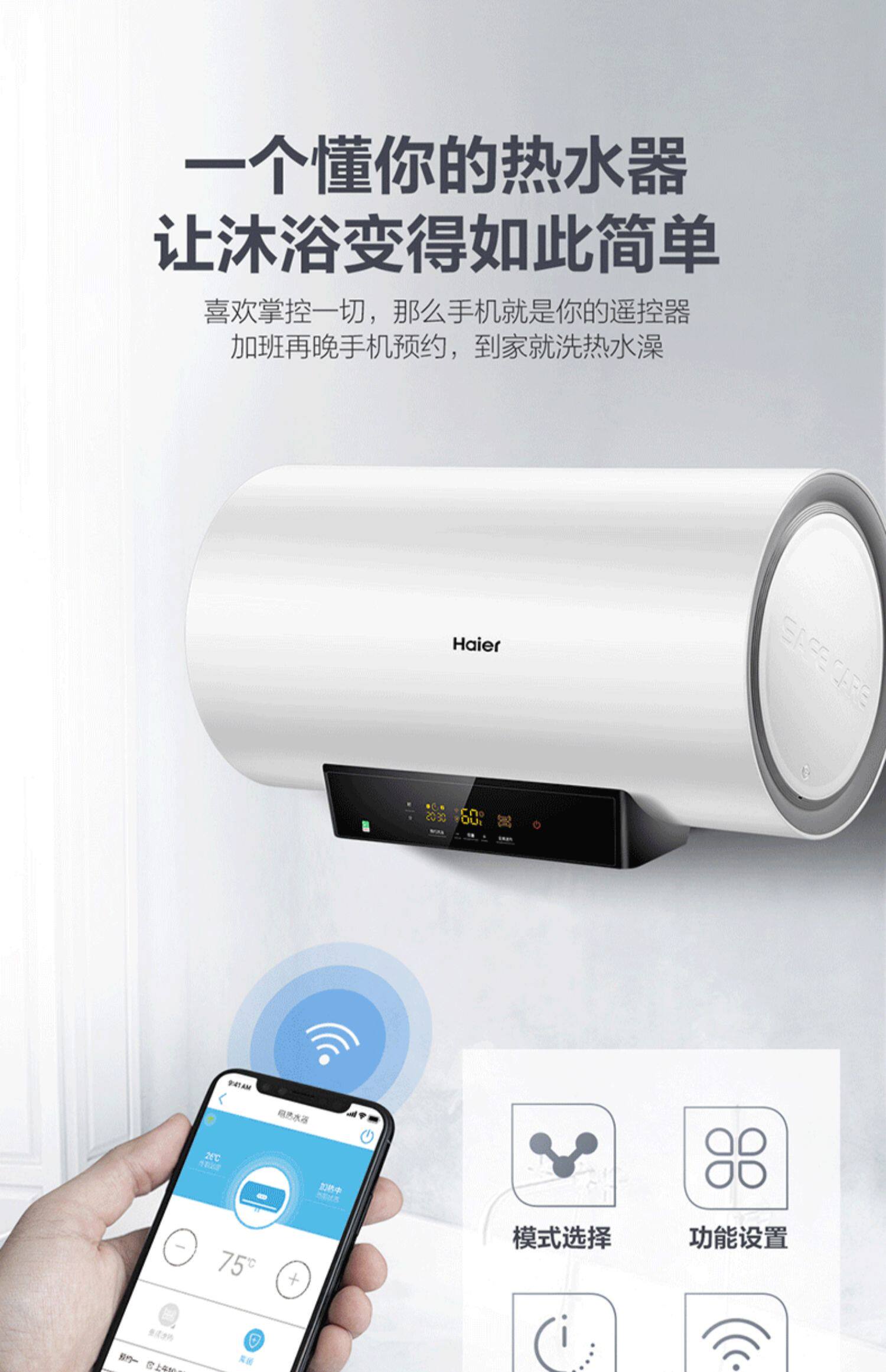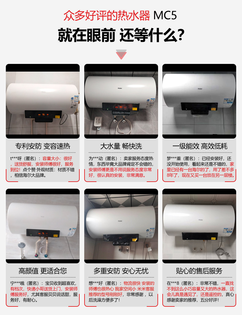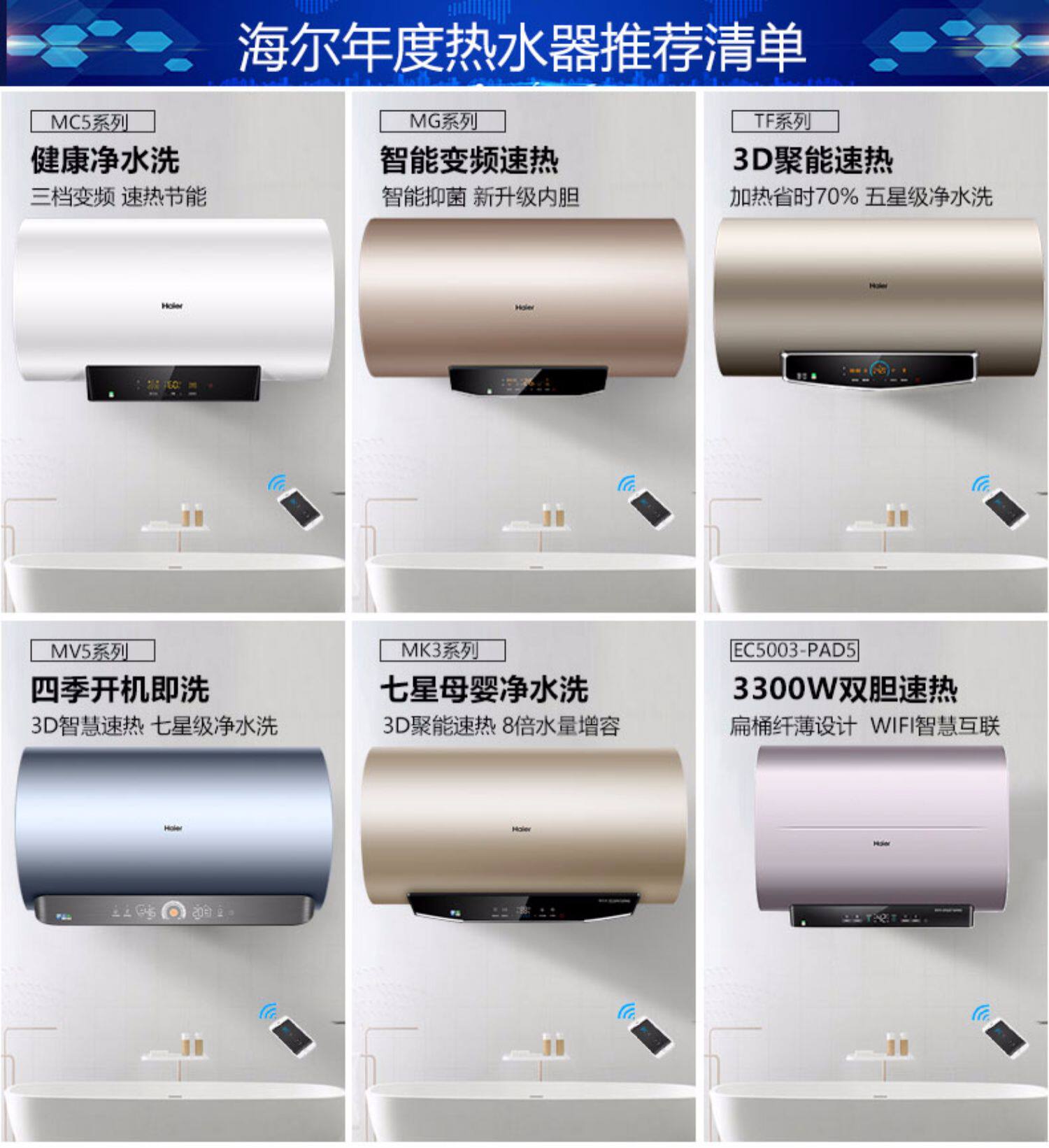 Haier 80 -Liter Electric Water -Heater Hovel Toame Barge Office Flagship MC5 Smart Voved до повышения энергоэффективности уровня 1 60 л.