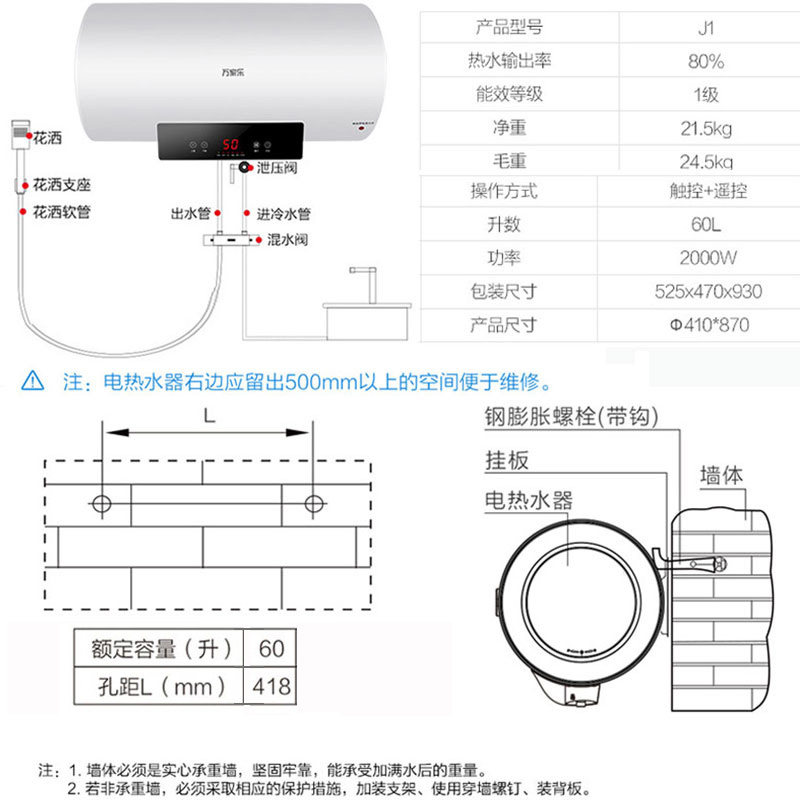 Macro/Wanjiale D60-J1 60-литровый нагреватель водонагреватель домашний туалет быстрое хранение