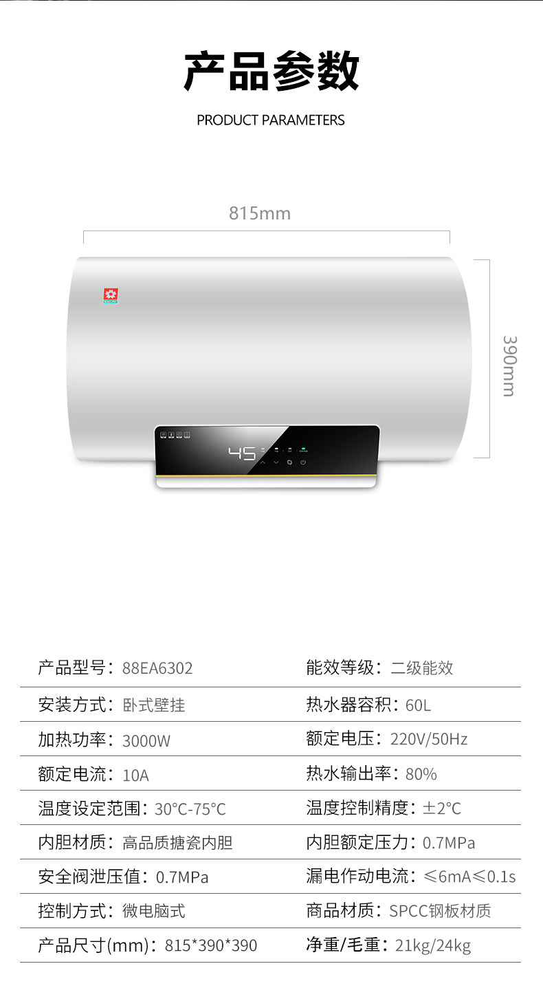 Sakura/樱花 88EA6302 Электрический водонагреватель 60 литров электрической ванны быстро