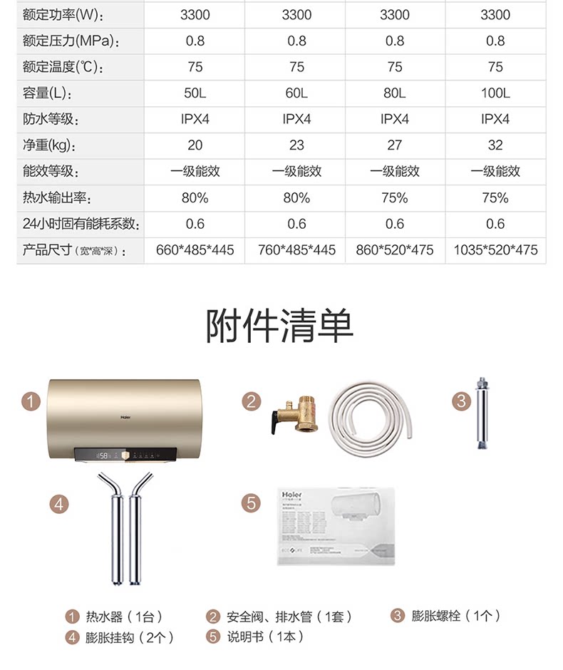 Haier Electric Watereeverter 100 литров энергоэффективного первого уровня с большой способностью управлять водой ES100H-GA3 (2AU1)