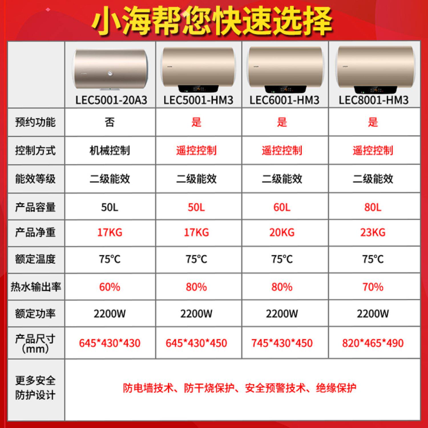 Haier -handsome Электрический водонагреватель дом 60L Постоянная температура для хранения воды Горячие 50/80 -литровые ванную комнату для хранения воды