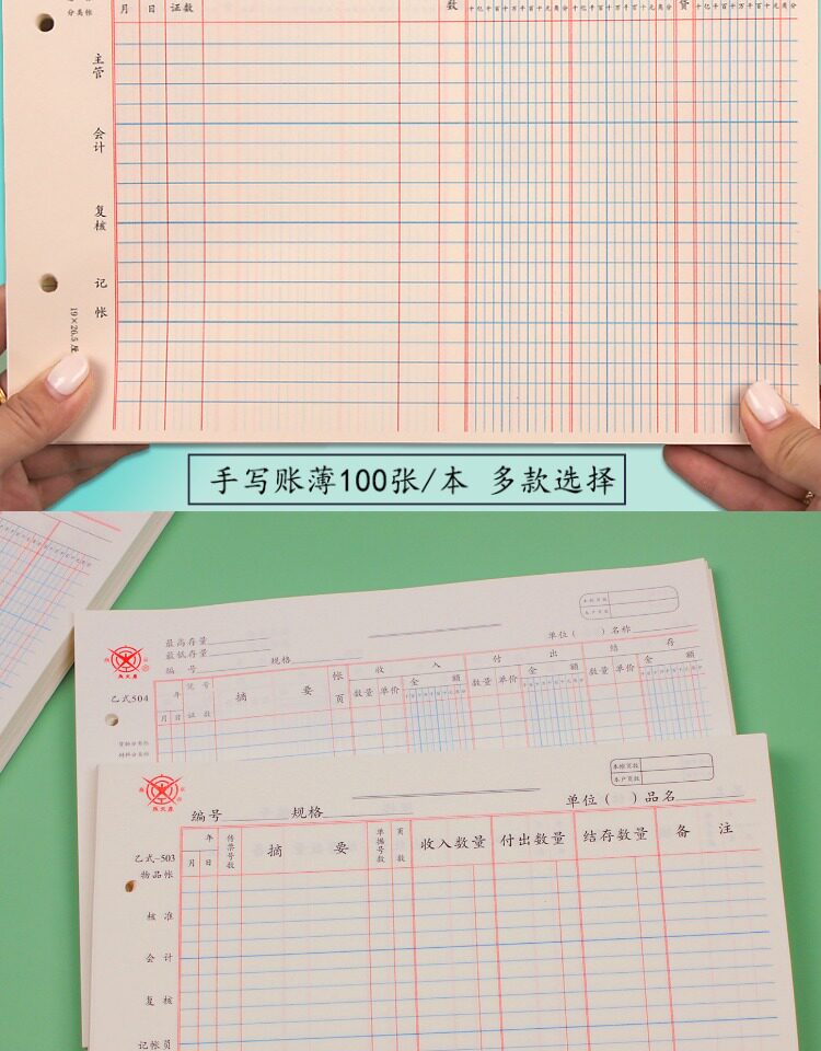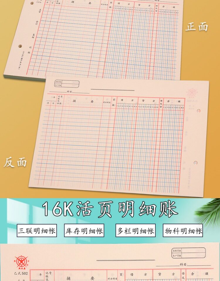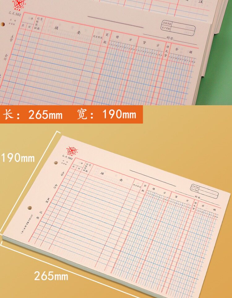 16K B-тип 502 страница счета страница главной книги страница книги с тремя столбцами страница счета с отрывными листами сумма товарной позиции подробный счет