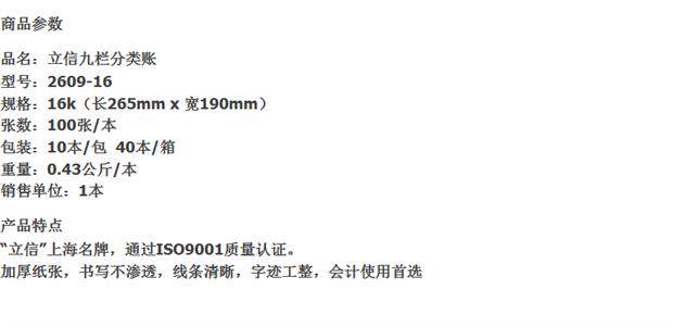 Ликсин 2609-16 Девятиколонная категория доставка 16K Ликсина учетная запись 2609-16 Ликсин девять классификация Чжан