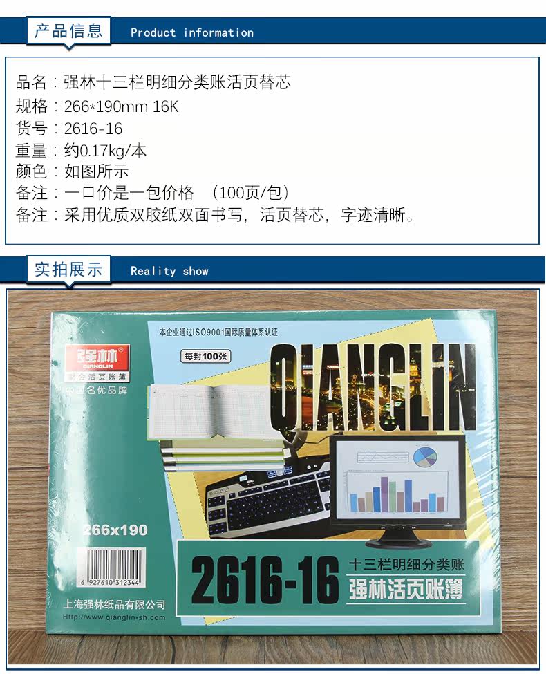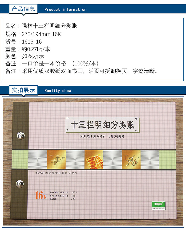 强林 1616-16 Thirteen Dannoma Subclassifation Book Book 16k Multi-Column Live Account Capital Financial Office Products Live Page