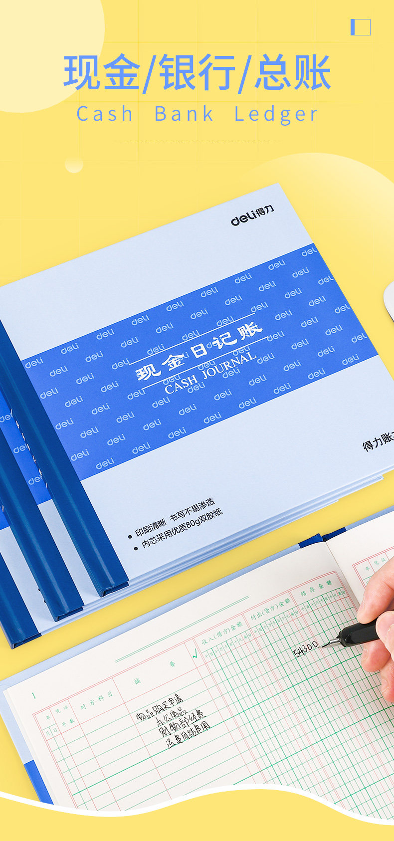 Deli Cash Diary 100 -страничный блог Blue Accounting Financial Products Банк -депозит Дневник общий классификационный счета, ссылки, ручные счета, полная запись и опыт предприятия предприятия