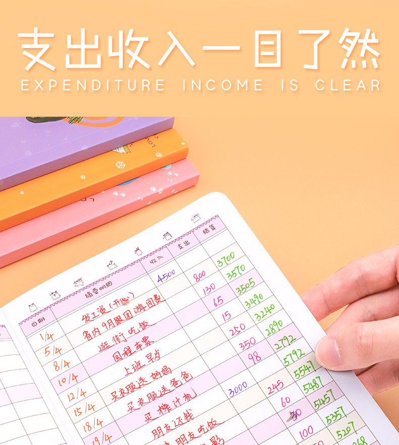 Семейная бухгалтерская книга лучших ежедневных доходов и записи о расходах Bencorete Финансовая ноутбука Корейская ленивая маленькая свежая свежая многофункциональная платная счета Кассовые книга Финансовые детали доходы доходов от доходов