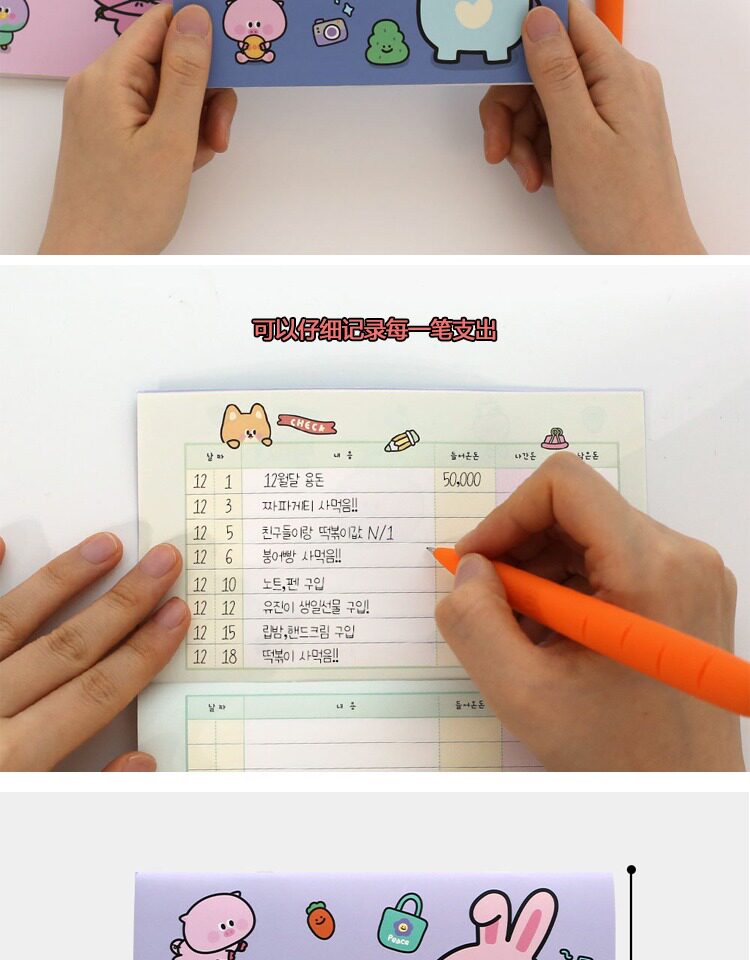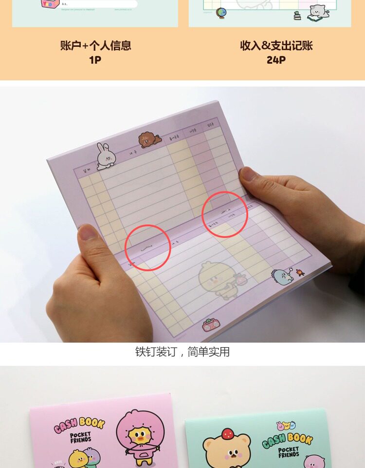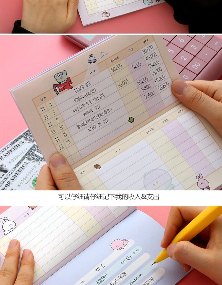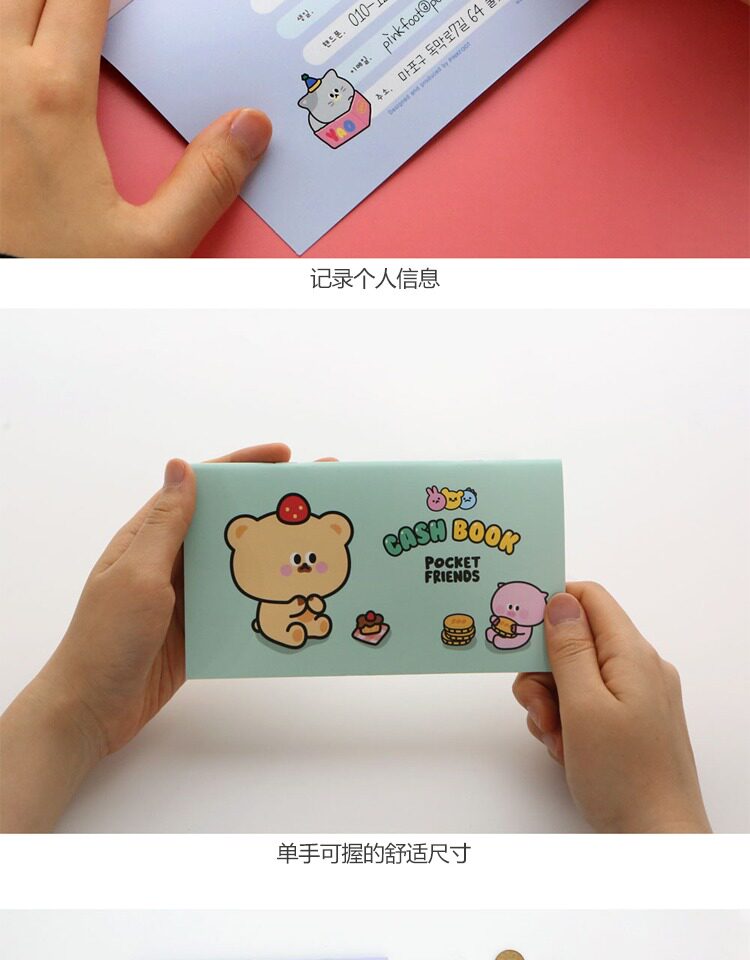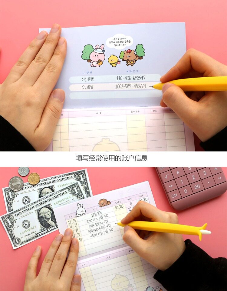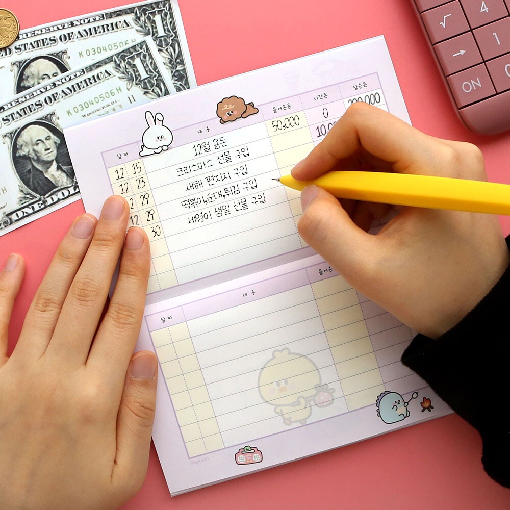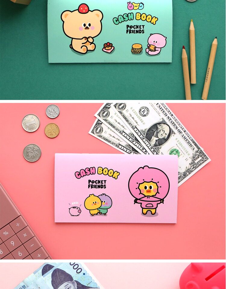 Корейский розовый розовый счета карманной счета личные доходы и отчет о доходах и расходах.