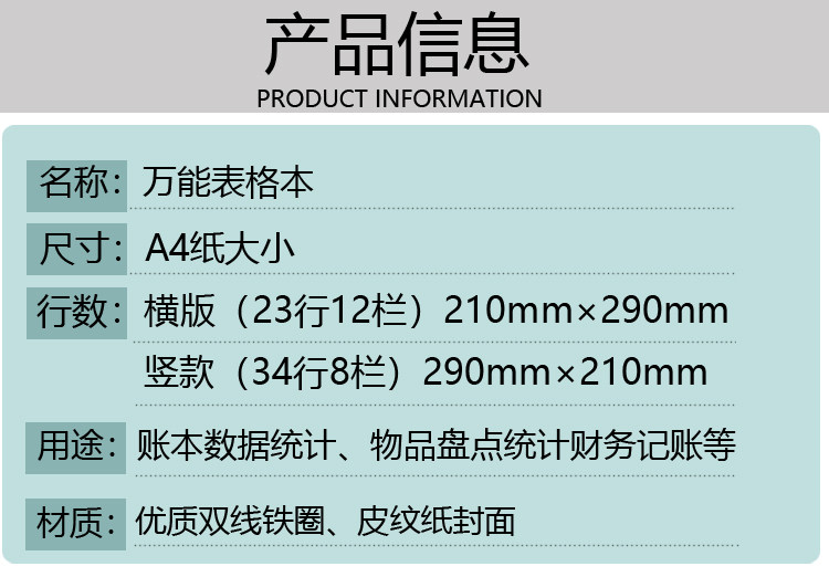 Окружающая универсальная таблица A4 Paper Paper Компания Финансовая учетная запись Living Page Book Book