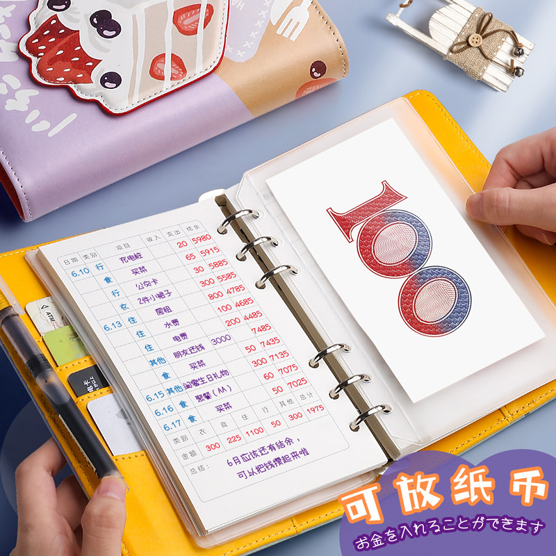 Живая страница бухгалтерских книг, счета с высокими учетными записями, милым бизнесом, детскими заметками, деньгами, многофункциональными, многофункциональными японскими домохозяйками в стиле японских вещей