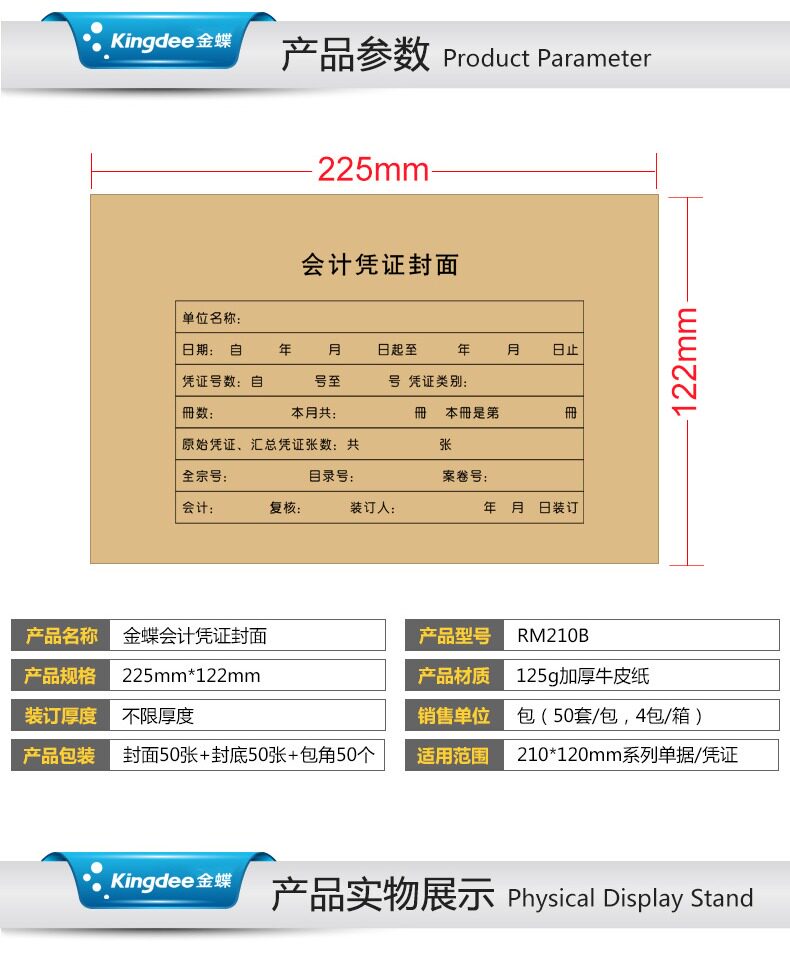 Корзина с сертификатом книги Kingdee Rom210B Cater Paper Accounting Cover 225*122 мм ваучер 50 комплектов/сумки