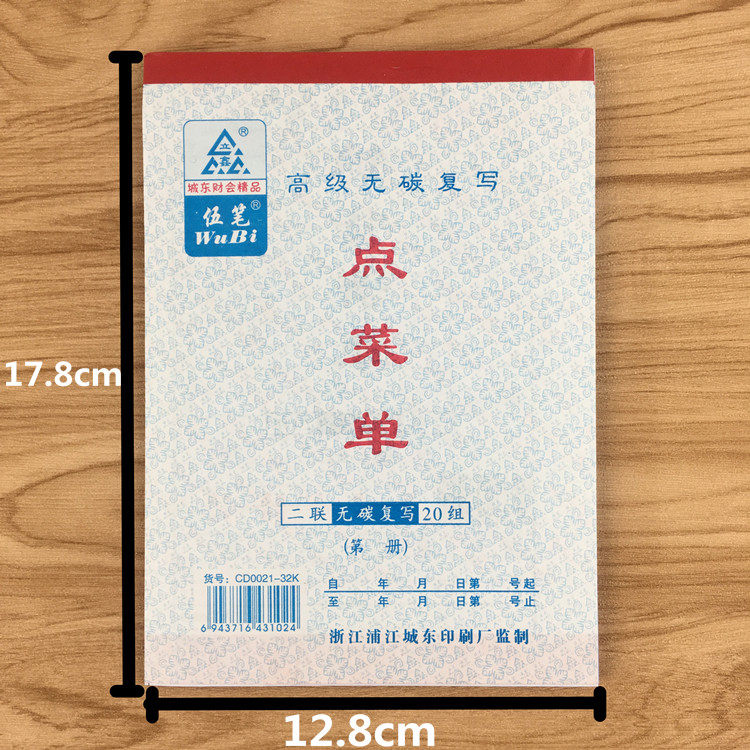 Размер меню заказа: 17,8*12,8 см.