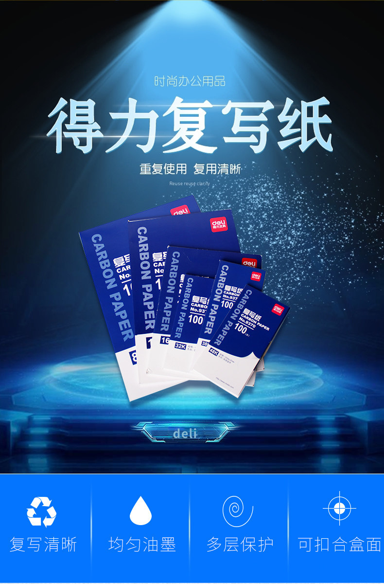 Deli Blue Re -Warting Paper Red Big A3 Double -Sided Carbon 16k Re -Warting Paper A4 Тонкая двойная копия с двойной копией 100 листов 16 Открытая синяя бумага над нижней частью 32 тыс. Печать бумаги