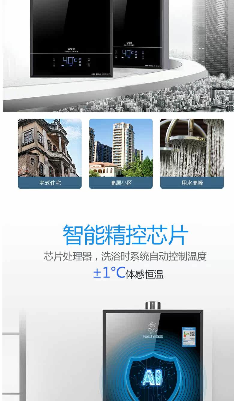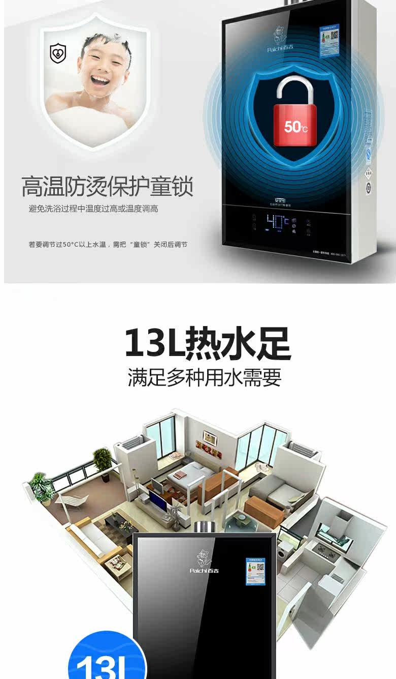 Baiji H7813B Газовый водонагреватель 13 -Литровый микроаллере Интеллектуальная постоянная температура природная газ против безрешительного домохозяйства сильная вода