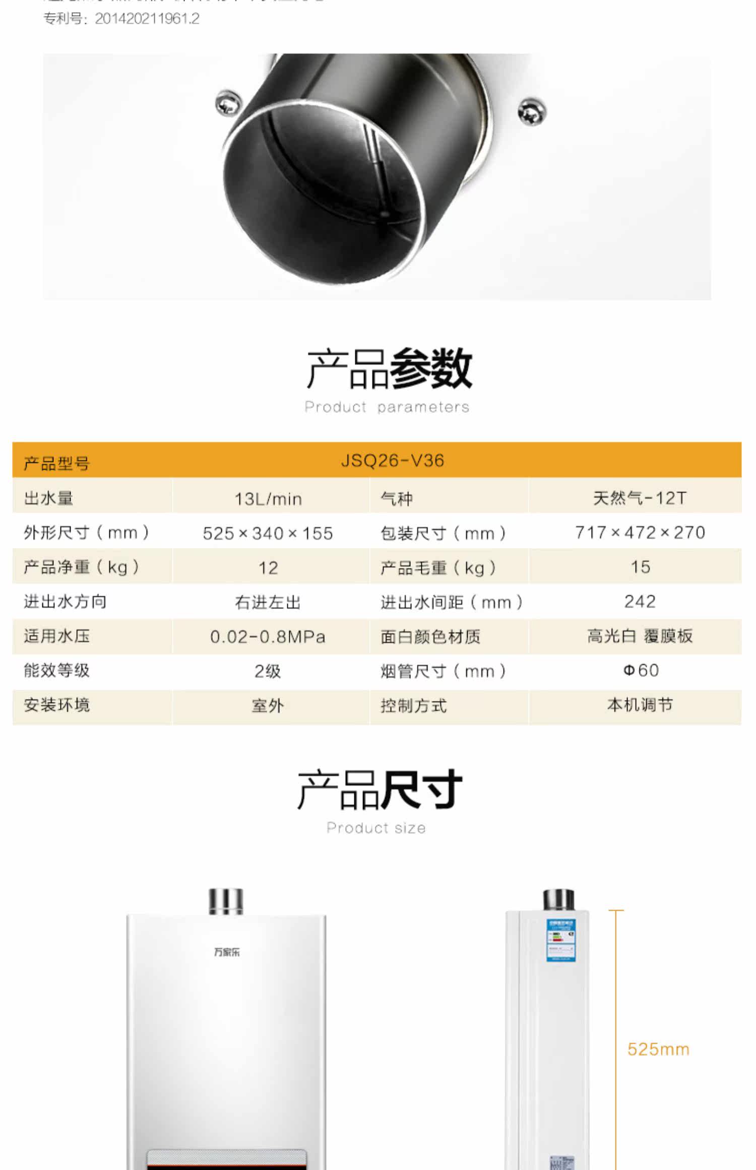 Macro/万家乐 JSQ26-V36 Газовой водонагреватель Дом Природный газ является тепловой интенсивностью и исключительной температурой 13 литров