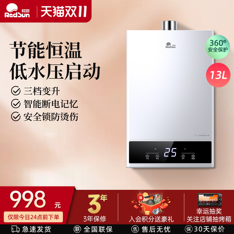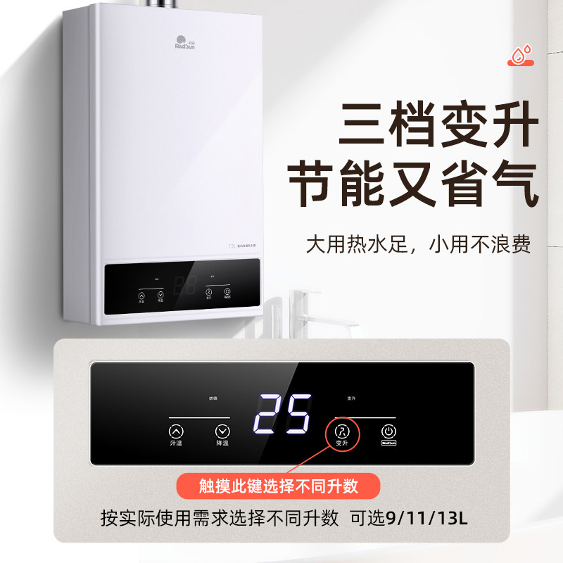 Красный японский газовый водонагреватель 13 -Литровый дом использует низкое давление воды, чтобы запустить интеллектуальную постоянную температуру.