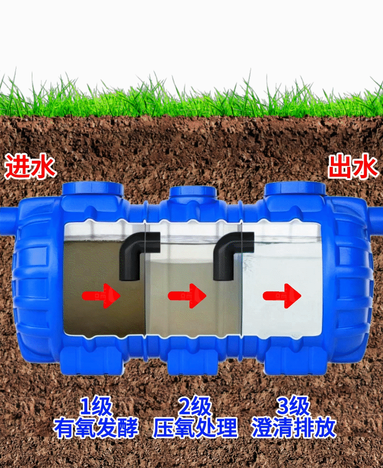 Двухслойный септик, трехкамерный, трехуровневый, из утолщенного полиэтилена, пластиковая бочка, новая сельская местность, специальная трансформация, бытовое стекловолокно
