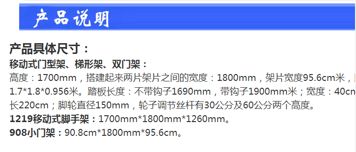 Описание продукта:Наши леса прочные и гибкие, имеют красивую технологию сварки, долговечны и обладают высокой адаптируемостью. Это идеальное вспомогательное строительное оборудование для большинства строительных и отделочных отраслей.Он особенно подходит для строительства, отделки и обслуживания небольших помещений, зданий сложной формы, парковок, входов и выходов, ворот, рекламных щитов и т. д. Этот продукт был тщательно разработан для обеспечения универсального, серийного и стандартизированного использования.Этот продукт легко монтируется и разбирается, повышает эффективность оперативной работы и создает благоприятные условия для стандартизированного управления строительными площадками. Это незаменимое оборудование для отделочных и строительных работ.