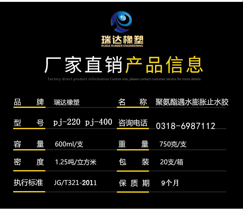 Полиуретановые встречи с расширением воды, а PJ-220 на водяном столе заполняет водонепроницаемый водонепроницаемый, а утечка резинка, быстрое сухое уплотнение плотности.