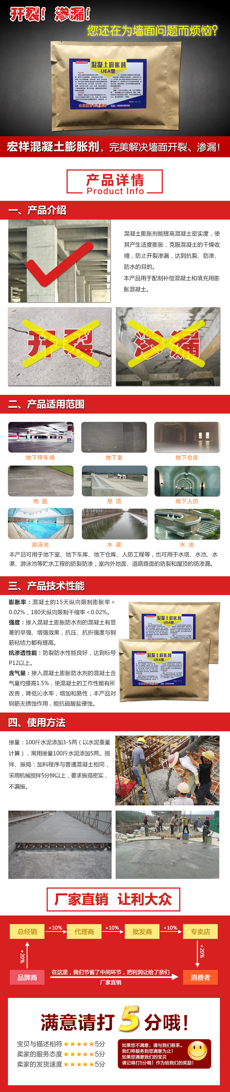 Подлинный экспансионный агент UEA -бетон с высокой экономичностью низко -ана -алкали -цементный расширение анти -фиссажиру
