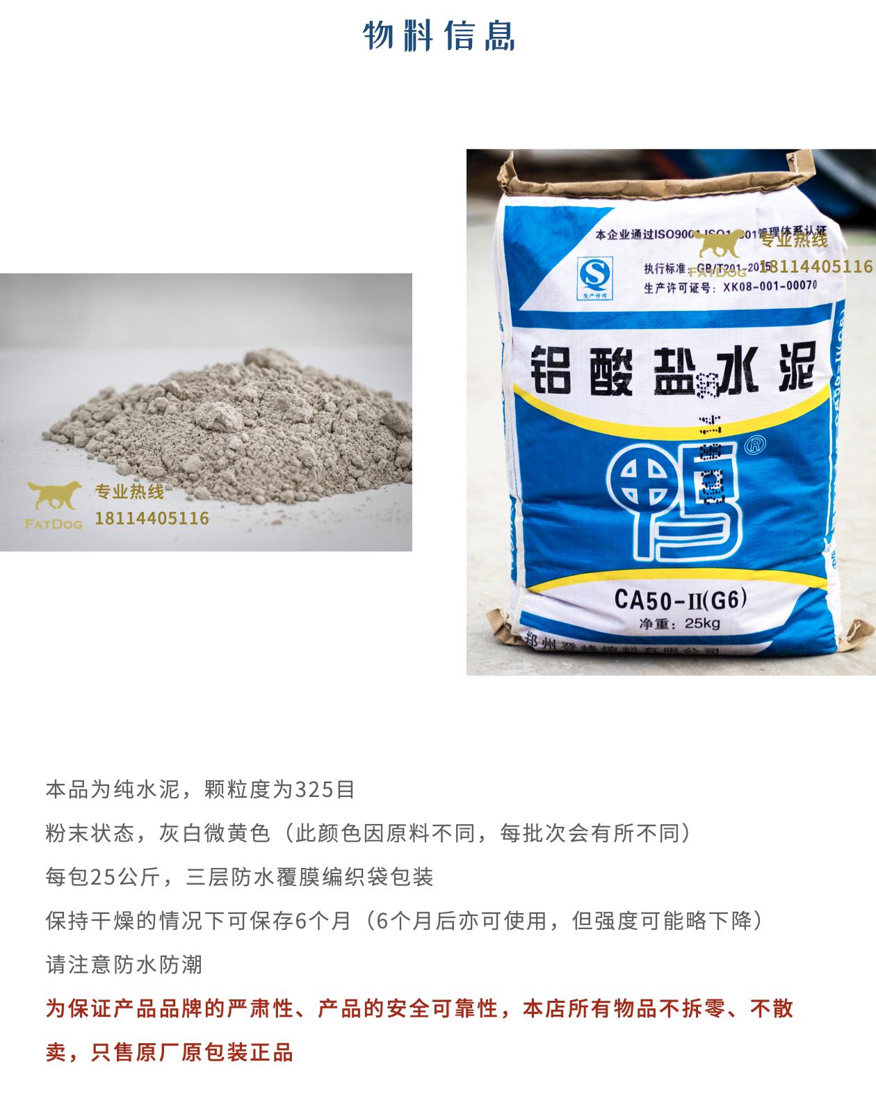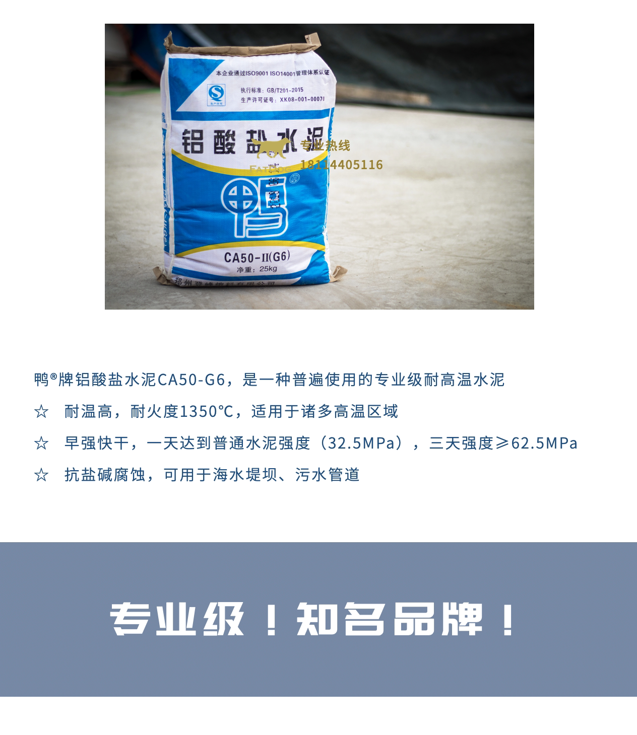 Утка бренд алюминий -резистентный пожарный цементный CA50G6 высокий уровень износостойкий огонь Огненной огонь Фаст Специальный материал. Новая дата Новая дата