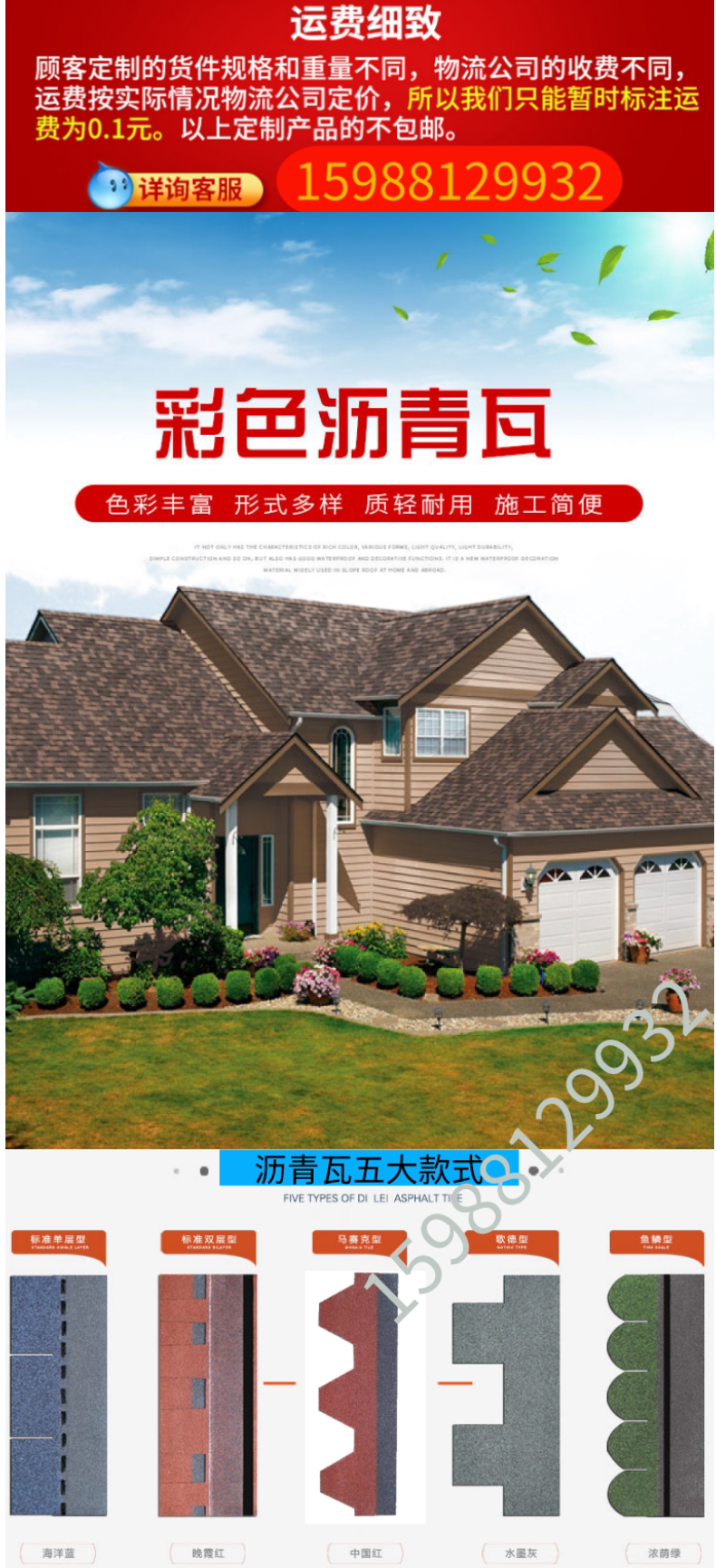 Самостоятельная колонна китайская красная крыша Мозаичная стеклянная плитка из однопроизводственной световой стальной виллы масляная плитка водонепроницаемая бутика