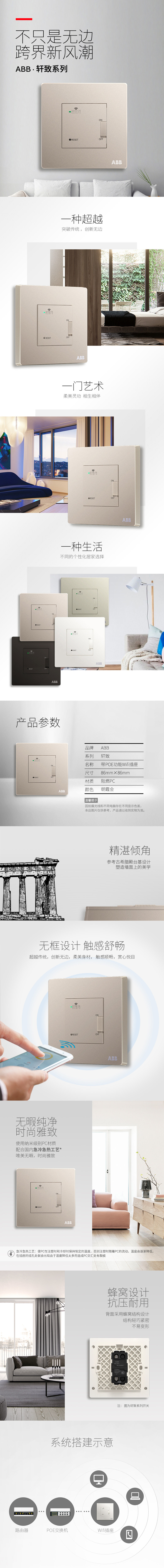 ABB Xuanzhi Zhaoxia Gold с розеткой WIFI с функцией POE (AF335-PG)