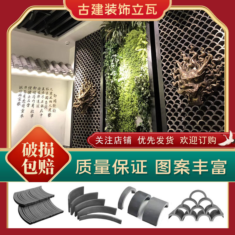 Цилиндрические плитки синие плитки, китайская декоративная стена Древние здания.