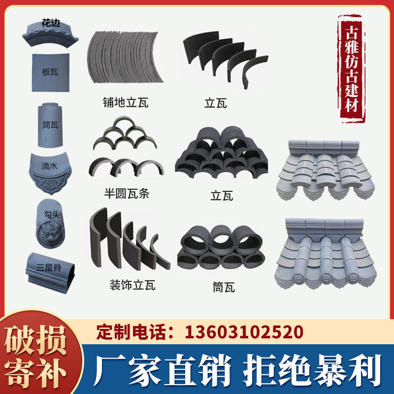 Гудзианская декоративная плитка Полу циркулярная маленькая голубая плитка антикварная китайская крыша плитка вилла двор полой морожено