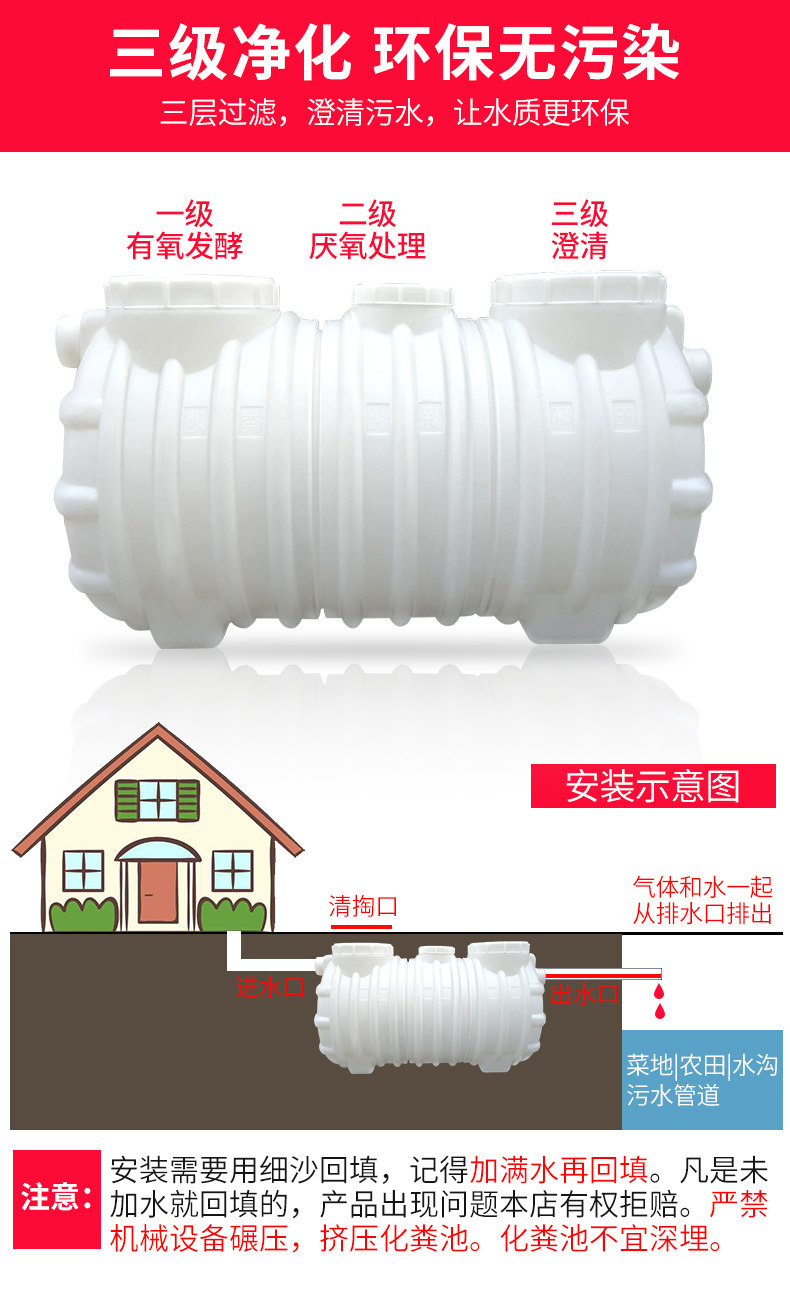 Септический бак банка пластикового ведра маленькая ствола Большой бочонок септик -танк Домохозяйный треугольник септик Домохозяйство Новый сельский туалет Ремонт