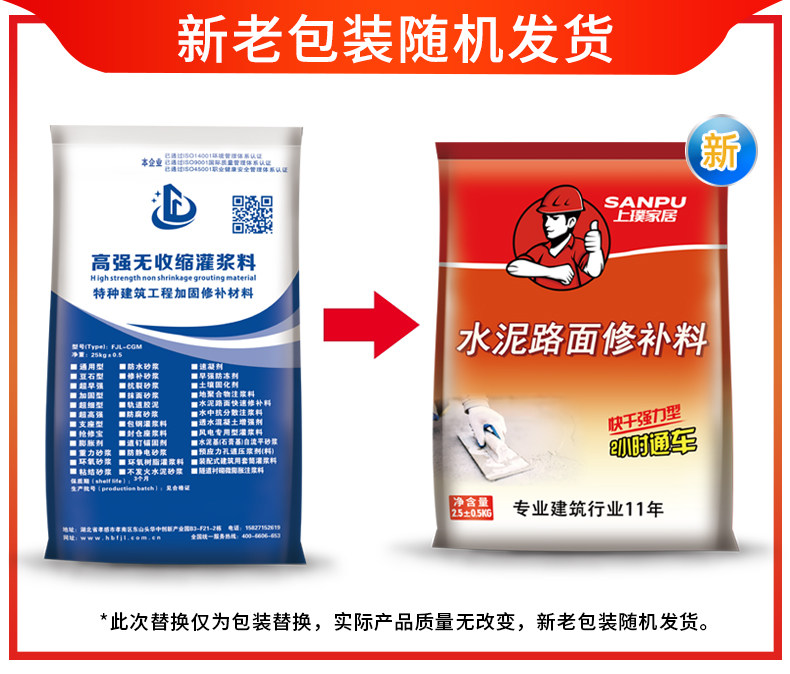 Цементный тротуар с высокой интенсивностью материал, запускающий песчаные кожные бетонные трещины, чтобы быстро высушить и ремонтировать шва материалы